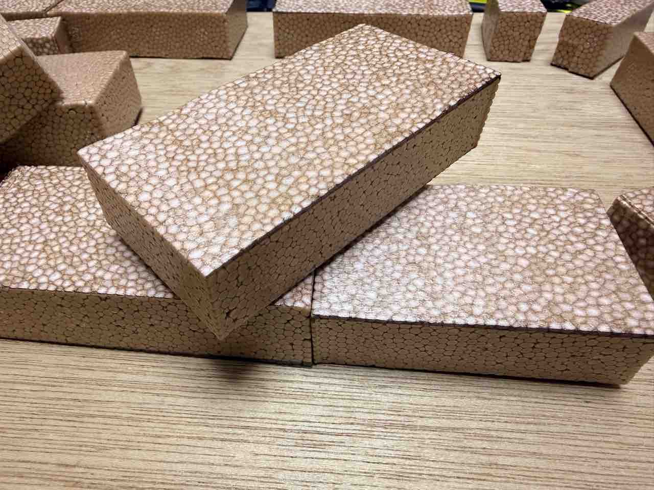 これをヒートカッターでジュワッと切断・加工して、起伏のある地形を作っていきます。